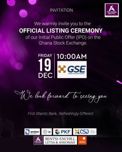 Join us for a momentous occasion! We’re celebrating the official listing ceremony of First Atlantic Bank Ghana on the exchange. Witness history in the making as we mark this significant milestone together.